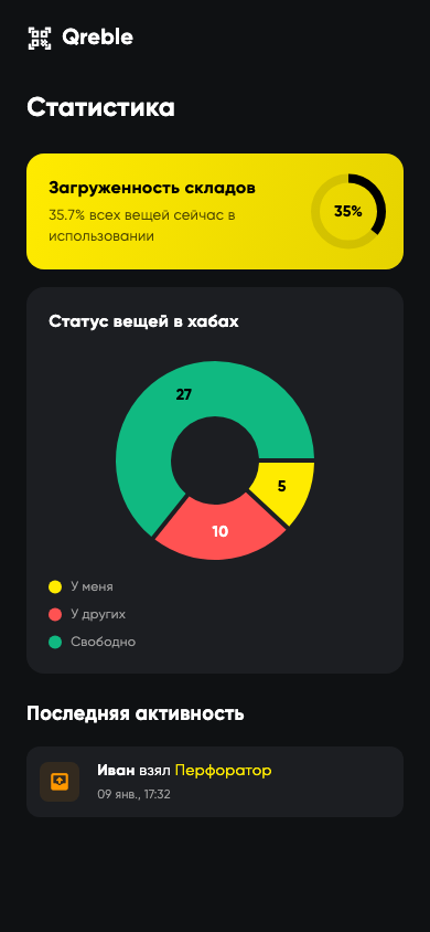 Qreble адаптируется под специфику вашего бизнеса. Если у вас есть вещи, которые выдаются в пользование — наше приложение создано для вас.
